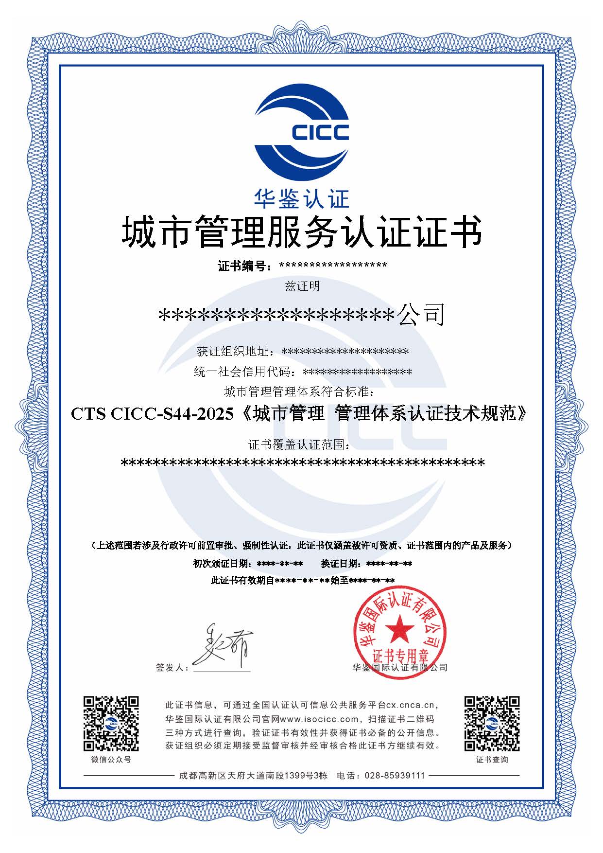 城市管理服务认证证书